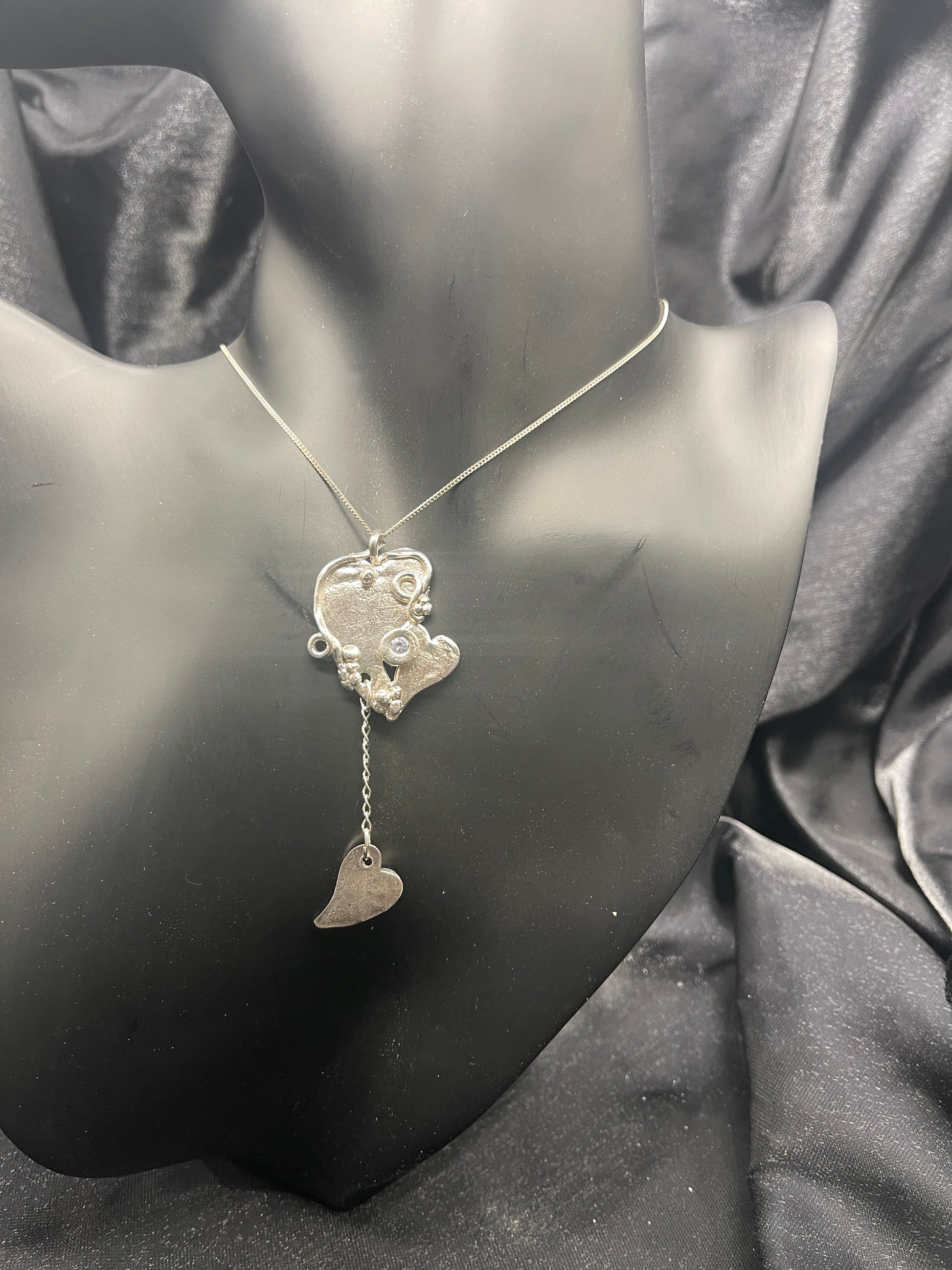Sterling Silver Pendant with 3 Hearts and Clear CZ Embellishments on a Sterling Silver Chain