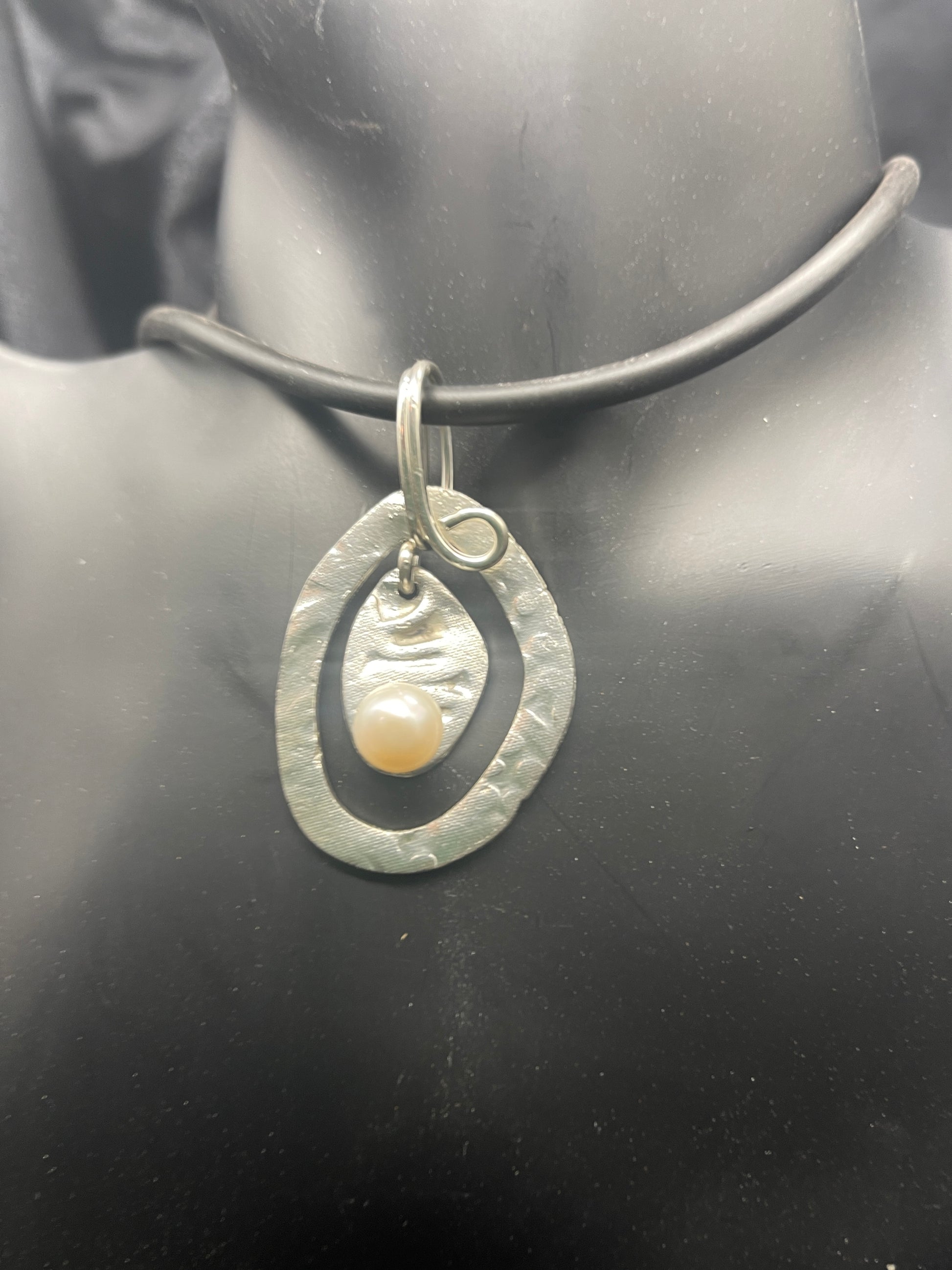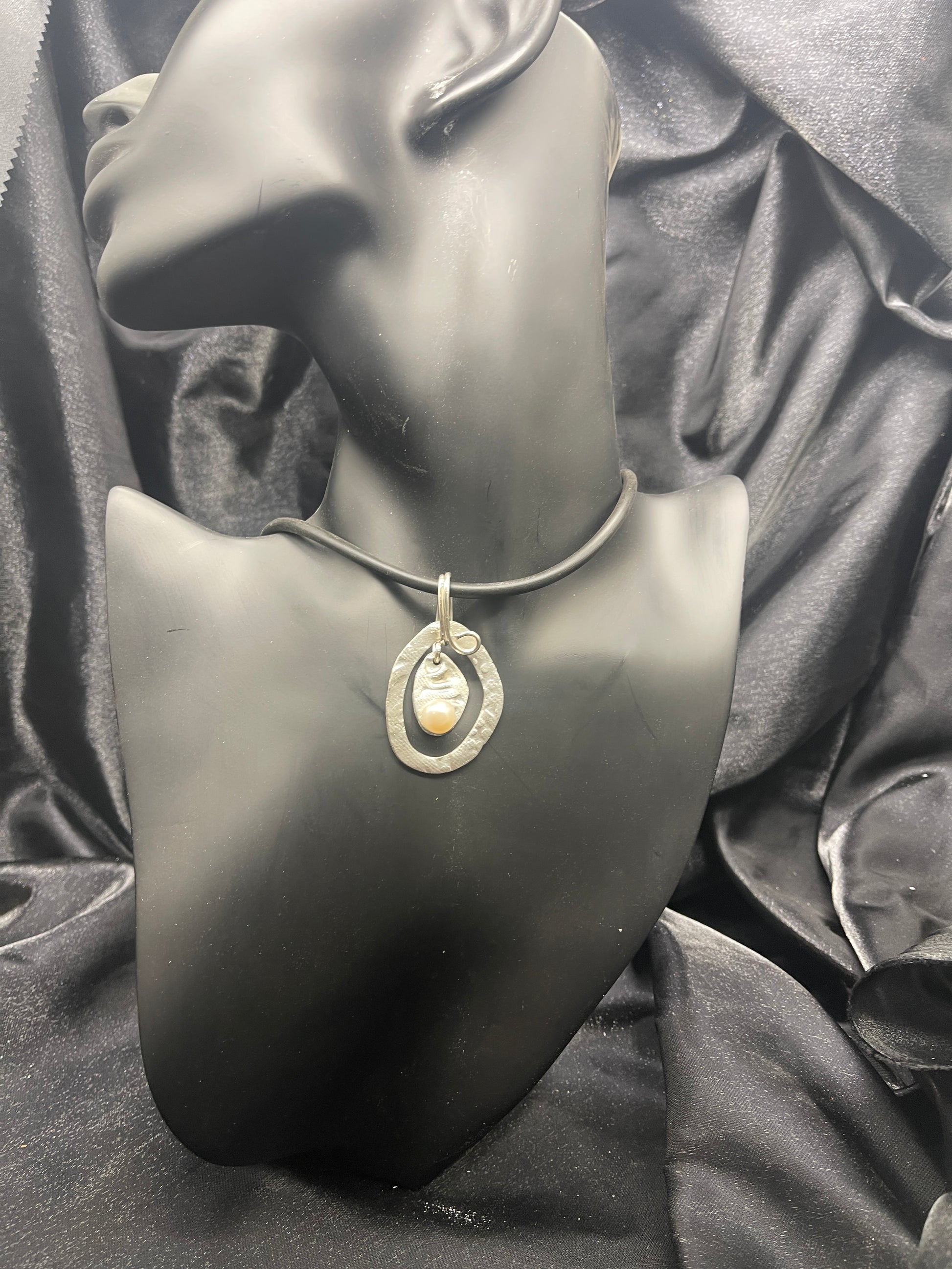 .960 Sterling Silver with a Fresh Water Pearl on a Neoprene Neck Cord and a Bale Made From Sterling Silver Wire