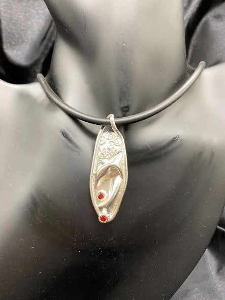 Very pretty Ruby CZ's set in a slumped designs of .999 Aussie Metal Clay Silver, on a neoprene cord.
